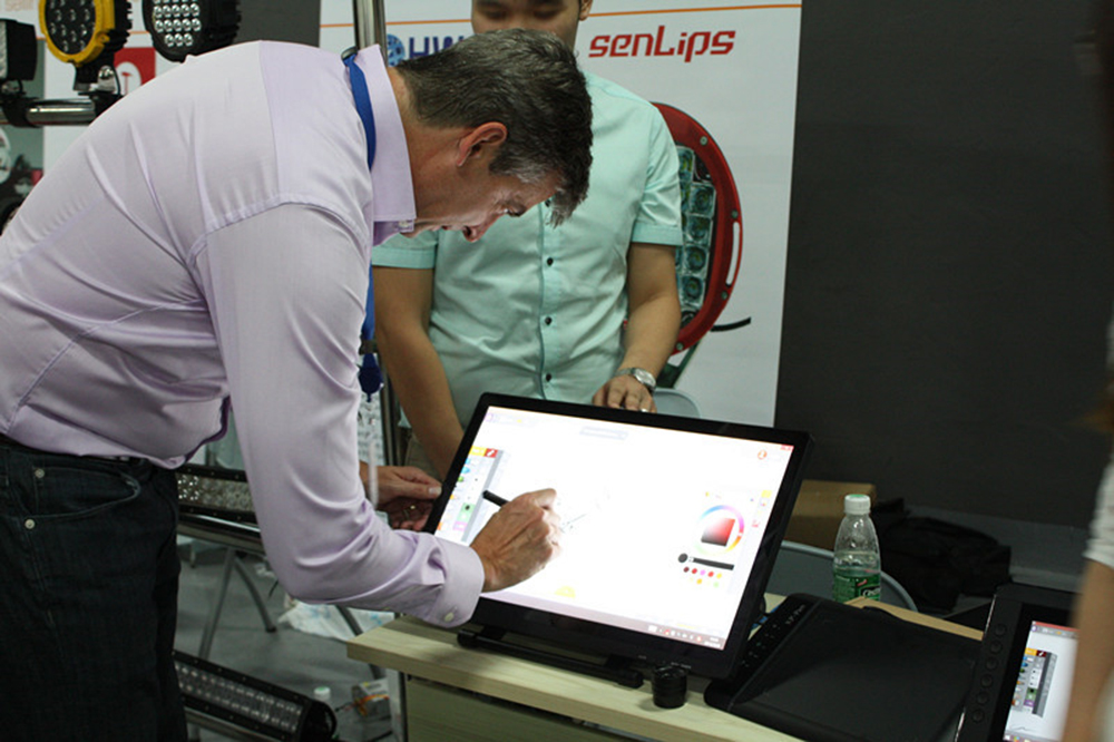 Após nossa apresentação para Gunninghan, o vice-presidente Eric Broussard veio ao nosso expositor e nos fez perguntas sobre a configuração do software e compatibilidade com nossos produtos. As almofadas de desenho XP-PEN são compatíveis com todos os sistemas operacionais e softwares populares. A reunião terminou com Broussard nos dando seu autógrafo no tablet XP-PEN com complementos no design.