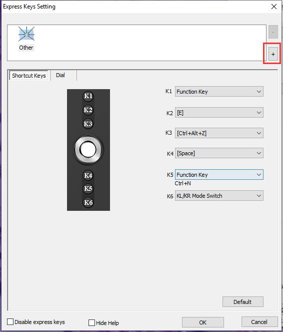 ● Comutador de modo KL / KR, se a sua tableta possui uma roda de rolagem, você tem a opção de programar vários comandos nele. Essa tecla permitirá que você alterne entre essas configurações.