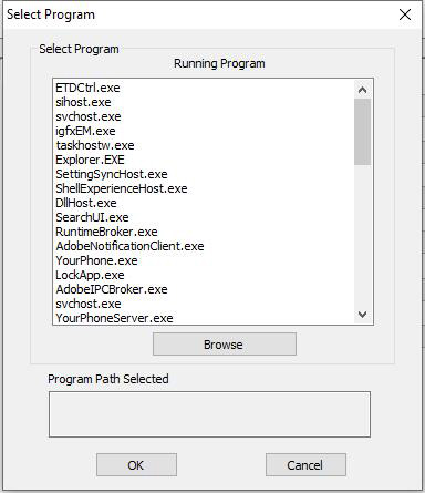 Você verá esta janela depois de pressionar o botão do sinal de mais (+). Nesta lista, você pode escolher o programa que deseja adicionar às Configurações do PenTablet. Se você não vir o programa que deseja, clique em Procurar para adicioná-lo manualmente.