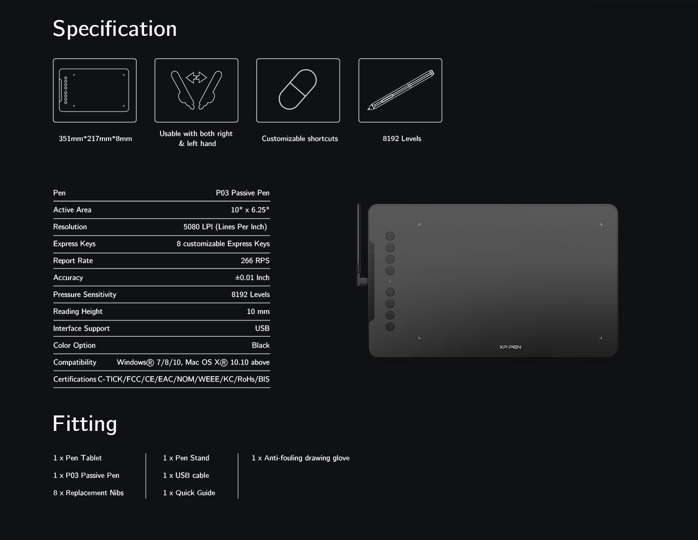 Compatible with Windows 10/8/7,Mac OS X 10.10 and above. Also compatible with many major designer software such as Photoshop, SAI, Painter, Illustrator, Clip Studio, and more.